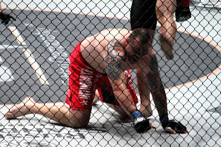 The last match-up of the evening [er- I mean, morning] [images that follow below] was between Brazil's Bibiano Fernandez and Australia's Gustavo [dyed hair] Falcirioli. Fernandez won that one.